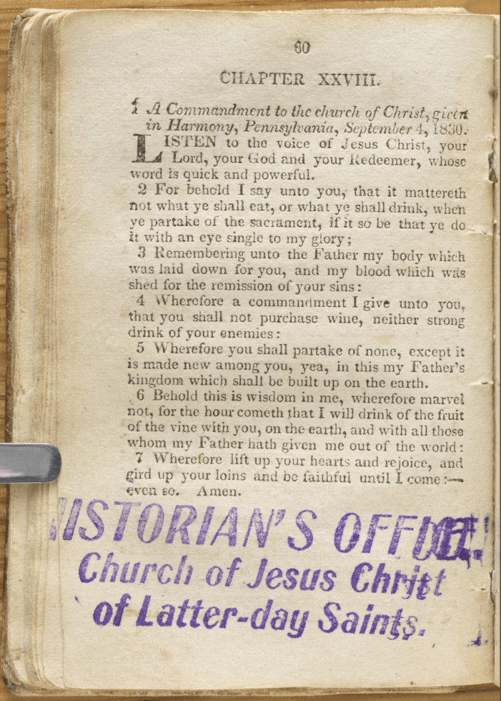 - 1833 original D&C 27 revelation published without mention of any heavenly messengers